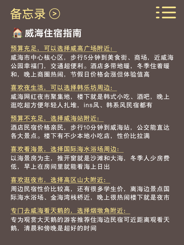🏘️住宿:住韩乐坊近邻的话离威海站相比近,火把八街和海外海水浴场离威海北站更近kaiyun在线登录入口,按照距聚散理安排游玩规章,愈加省时省力!