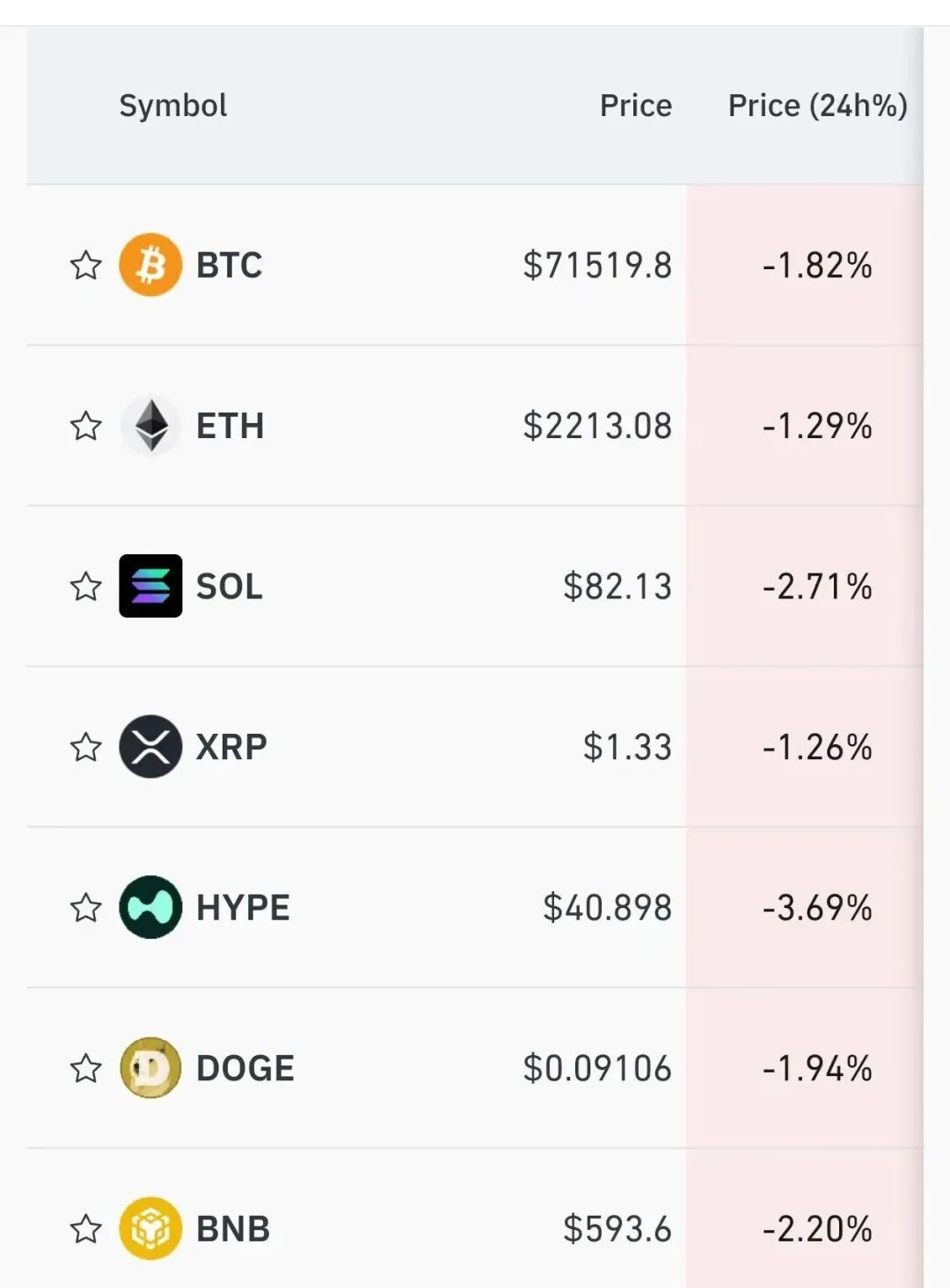 适度18时,比特币报71519好意思元/枚,日内跌1.82%。以太坊、SOL、狗狗币等同步下落。据CoinGlass数据统计,最近24小时,世界共有112613东说念主被爆仓 。